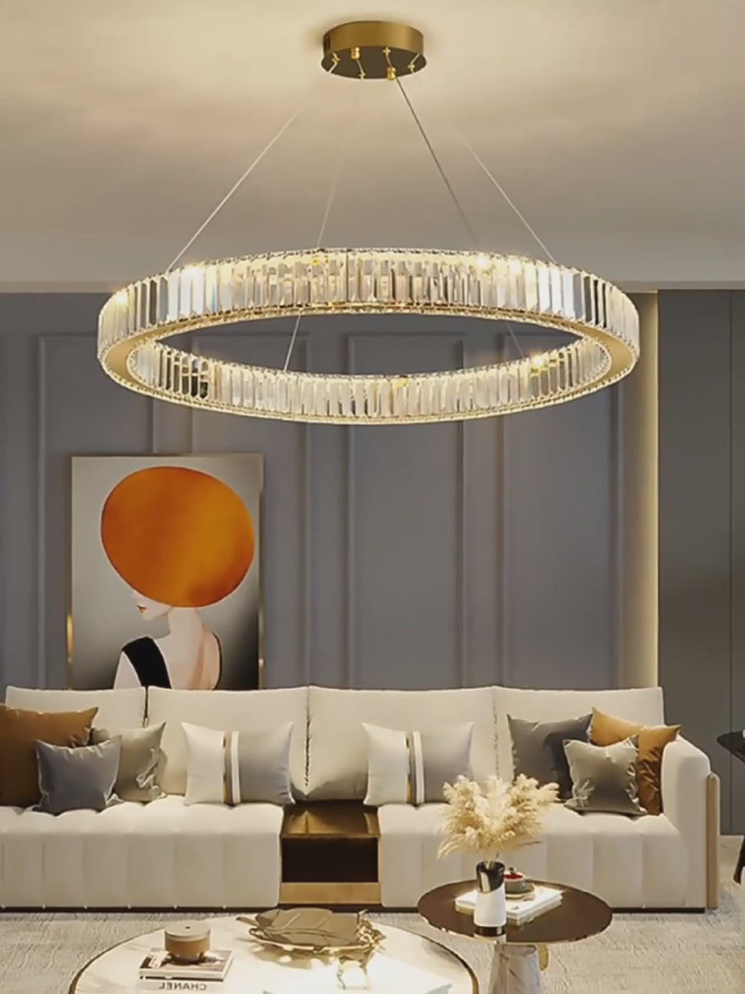 Ring Hanglamp - Goud - 60 cm - Luxe Kristal Kroonluchter - Woonkamerlamp